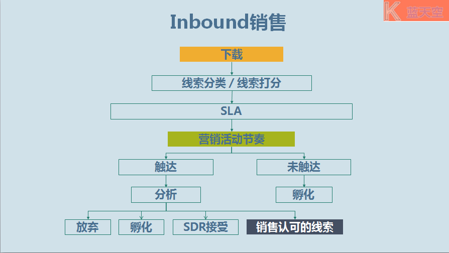 这一步骤被称为鉴别线索,需要SDR乃至整个市场部和销售部对MQL的标准达成一致。Inbound和outbound SDR在鉴别MQL的标准和流程上是相同的。