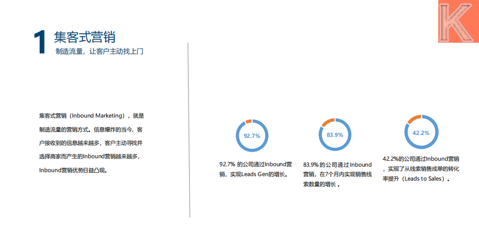 这本指南为您详细讲解高客单价获客策略: • 利用集客式营销(Inbound Marketing)让 用户主动上门,并通过数据去优化每一个用户 找上门的过程,从而实现Leads数量的增长。 • 利用目标客户营销(ABM)主动出击,在前 期互动阶段便为他们带来价值。